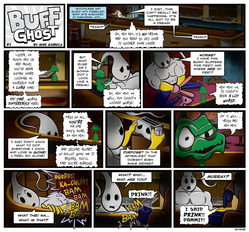 While Buff is lost in thought and buried in the potential for an afterlife of purpose, in comes a visitor!
